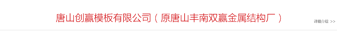 唐山創(chuàng)贏模板有限公司(原唐山豐南雙贏金屬結構廠)始建于一九九七年,是具規(guī)模實力的組合模板生產企業(yè)。公司技術力量雄厚,質量管理體系完善,與中鐵,中建,中交,中電,中水,中石油,中石化,河南水利工程局等大型施工企業(yè)有長期合作關系,產品覆蓋各省市自治區(qū)并出口新加坡,馬來西亞,委內瑞拉,印度,保加利亞等國,深受國內外客戶的一致好評。
